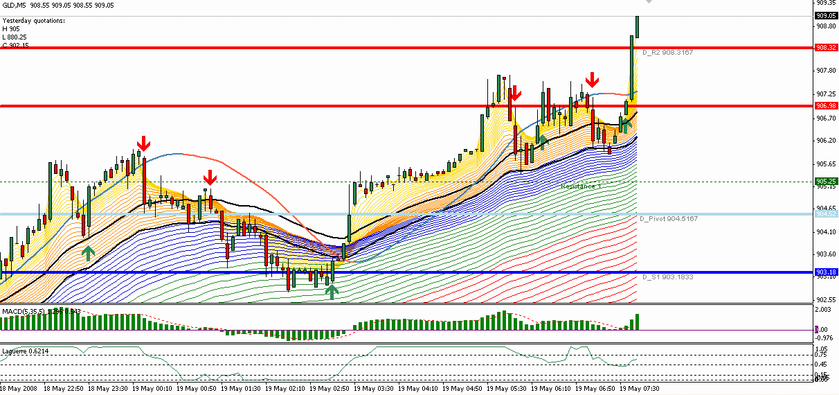 Originalul GMMA este format din mai multe EMA si incearca sa arate ce fac traderii pe term scurt si pe termen lung pe piata. NU face forecast... doar arata care este tendinta pe piata la un anumit moment.
