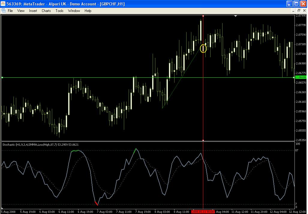 As mai avea de adaugat ca pozitiile de genul celei afisate in imaginea de mai jos au sanse minime de reusita, trebuie ca oscilatorul sa treaca in afara zonei OS respectiv OB, concomitent cu incheierea candelei, nicidecum mai repede.