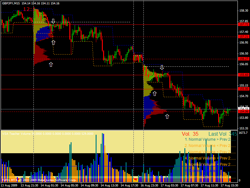 de ceva vreme urmaresc cu mult interes un indicator nou care face o treaba foarte buna in a determina nivelele de suport si rezistenta in timp real, ca sa zic asa. indicatorul se numeste "market profile" si l-am pescuit dintr-un topic de pe FF (Trade using VSA), undeva spre ultimele pagini...