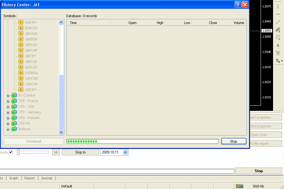 Apasati tasta F2 va aparea urmatoarea fereastra si veti downloada datele istorice ale perechii ce va intereseaza: