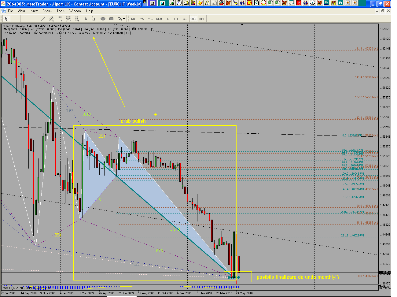 Da, a fost frumos patternul si a si functionat ok, dar nu l-am urmarit la vremea lui din pacate. Era o confluenta a lui 121.7 din primul val orientat in sus cu 261.9 din cel de-al doilea val, mai mic.