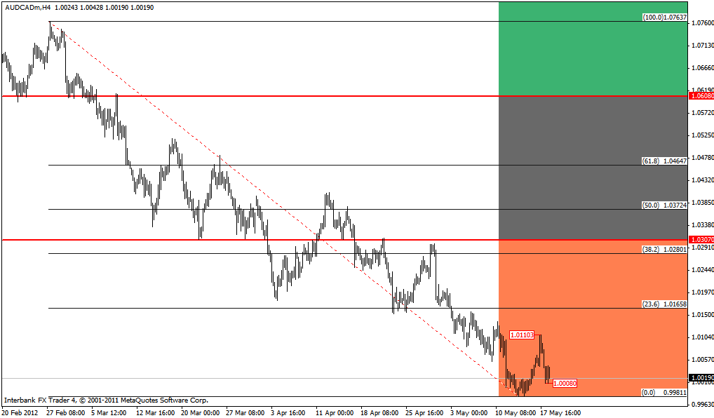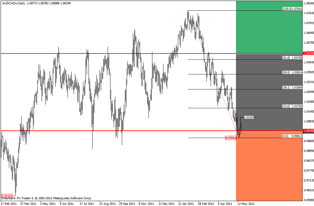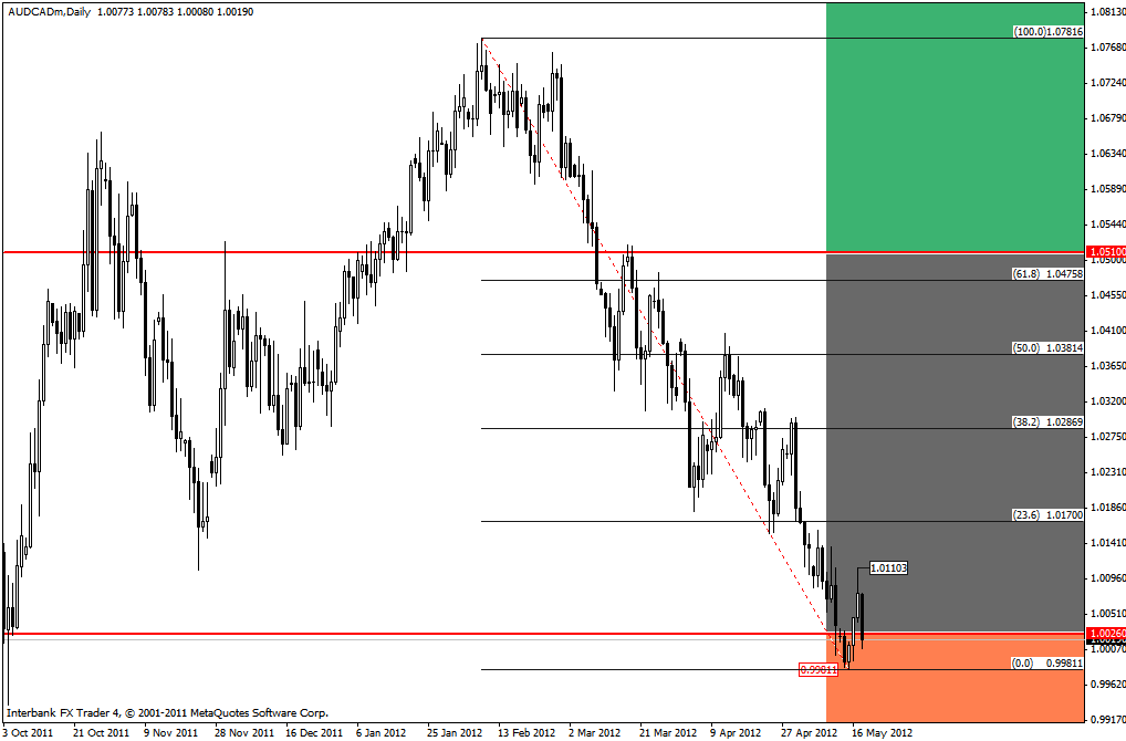 Daca, totusi, perechea va inregistra urcari si va depasi maximul de la 1.01103, inchizand peste pivotul major 1.0026 putem vorbi de o corectie mai adanca sau miscari eratice (sideways) in jurul lui 1.01725, respectiv 1.02889 (corespunzand nivelelor Fibonacci de 23.6 si 38.2 din miscarea scazatoare de la 1.06816 la 0.99811.