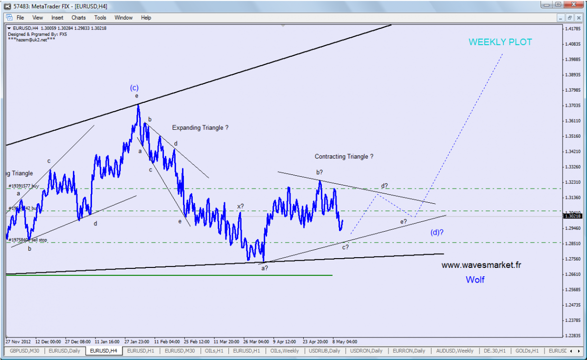 In acest moment puteti sa analizati zi cu zi cum o piata se poate transforma dintr-o piata complexa in una si mai complexa . In fiecare zi se vede cum am mers pe presupuneri crescand pas cu pas complexitatea incercand sa ma tin in valuri fara sa pierd urma . Din data de 28022013 deja se vede cum asteptam acest Triunghi dar nu presupuneam ca o sa fie asa de mare . Presiunile care au fost pe moment pe EURUSD au impins piata intr-o zona mai adanca decat ma asteptam cu toate ca nu au incalcat nici o regula .