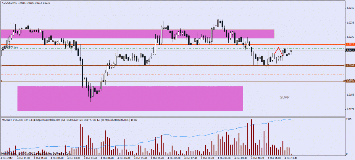 Încercăm o intrare în buy. Am primit un jumate de semnal "captivare", cu slab retesting în ora 4.00 după terminal (fișieru AUD.bmp).
