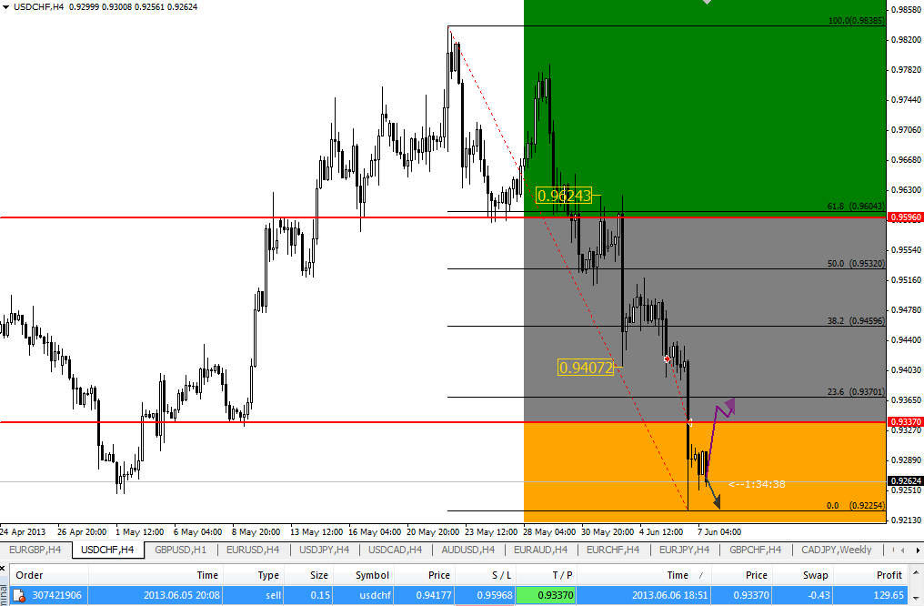 Perechea a confirmat scenariul coborarii prezentat in clipul din postarea #27. Pretul a ajuns pana la un minim de 0.92254, inchizand candela anterioara in zona de bias scazator sub pivotul de la valoarea de 0.9337. In aceste circumstante, avem doua scenarii posibile: